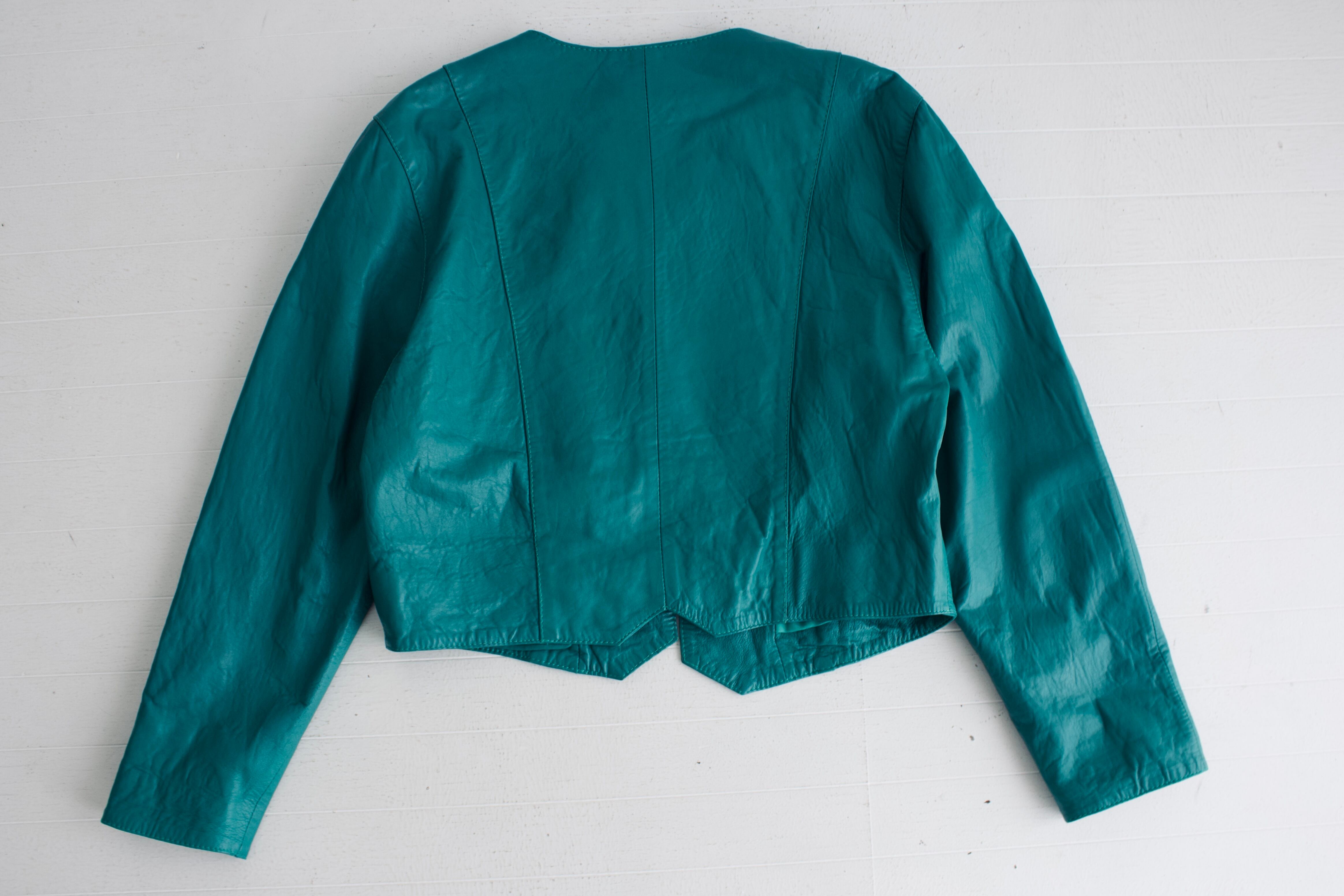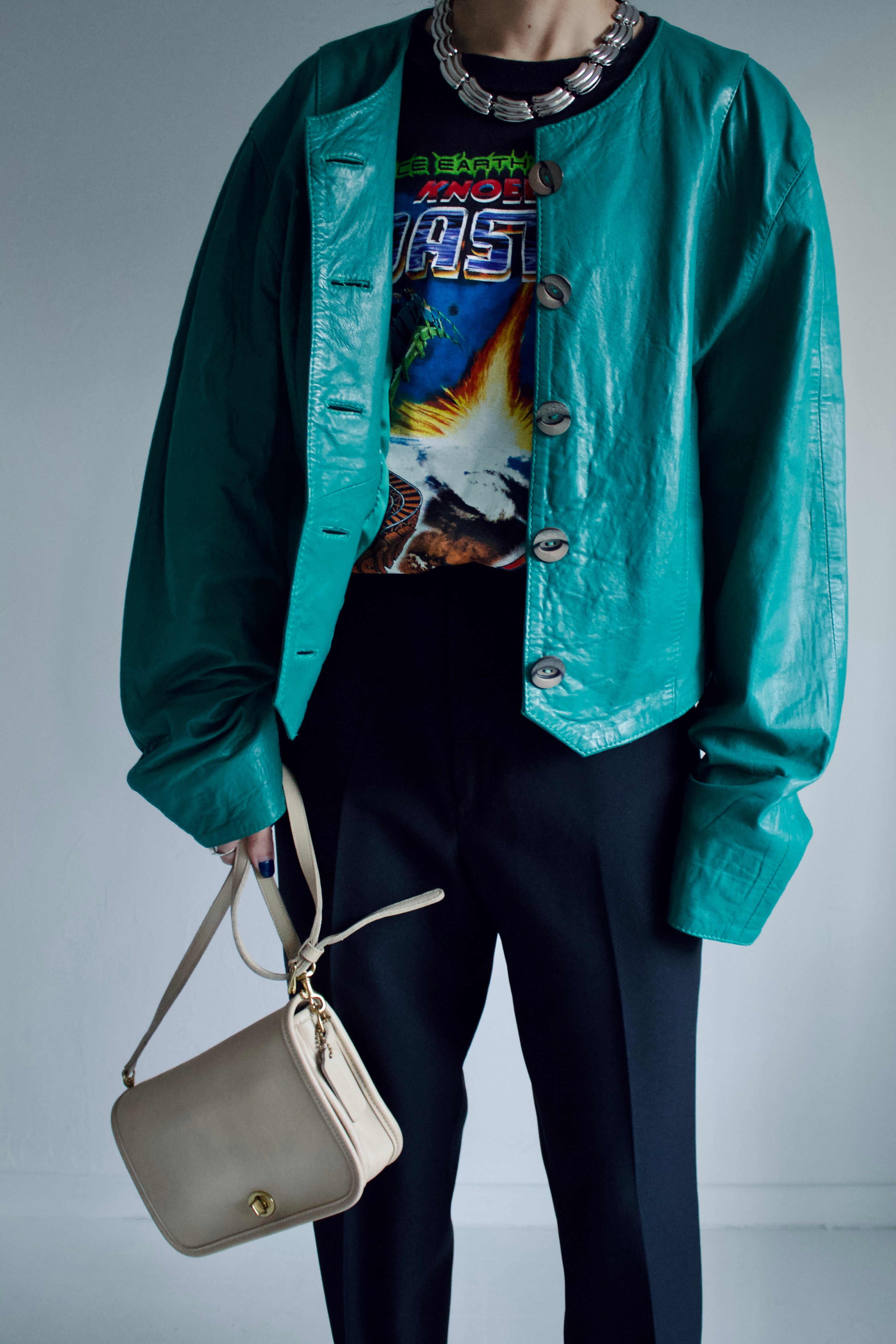 Germany Emerald Green Collarless Leather Jacket