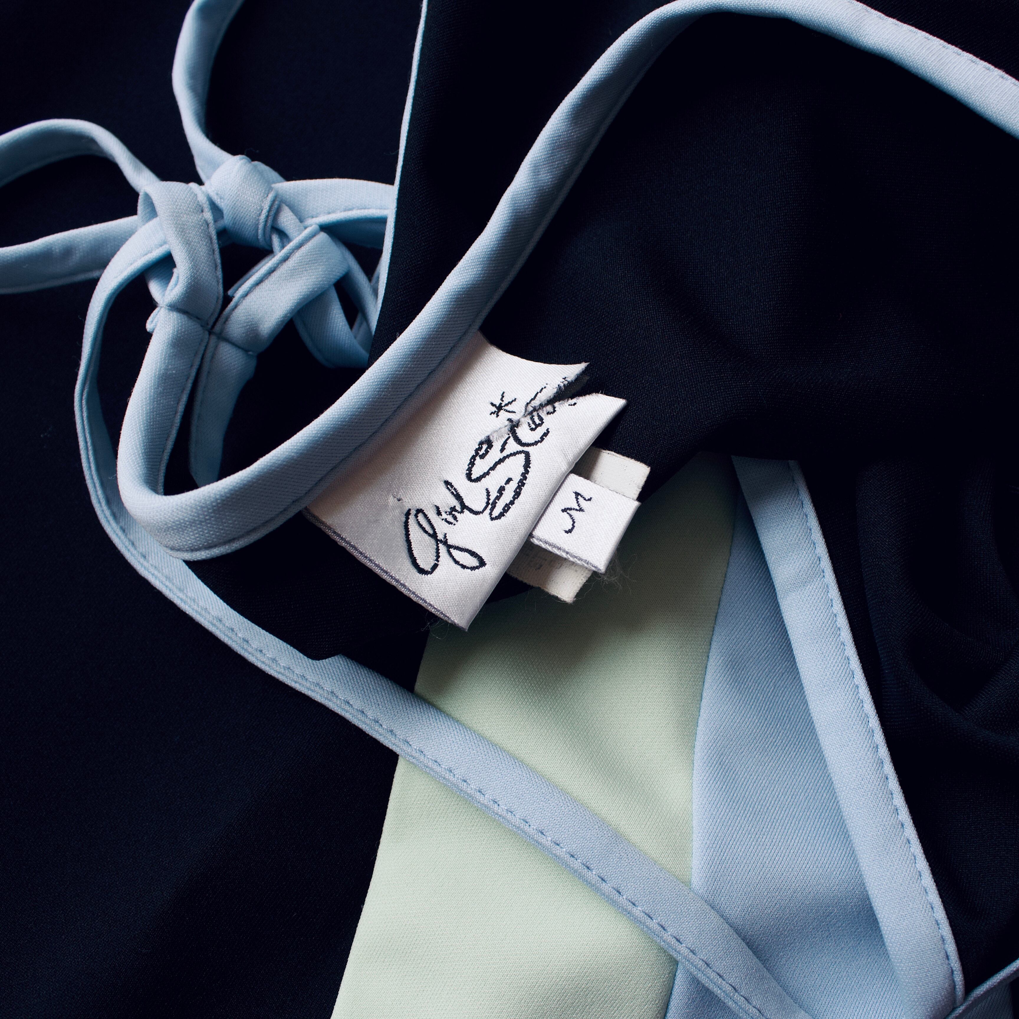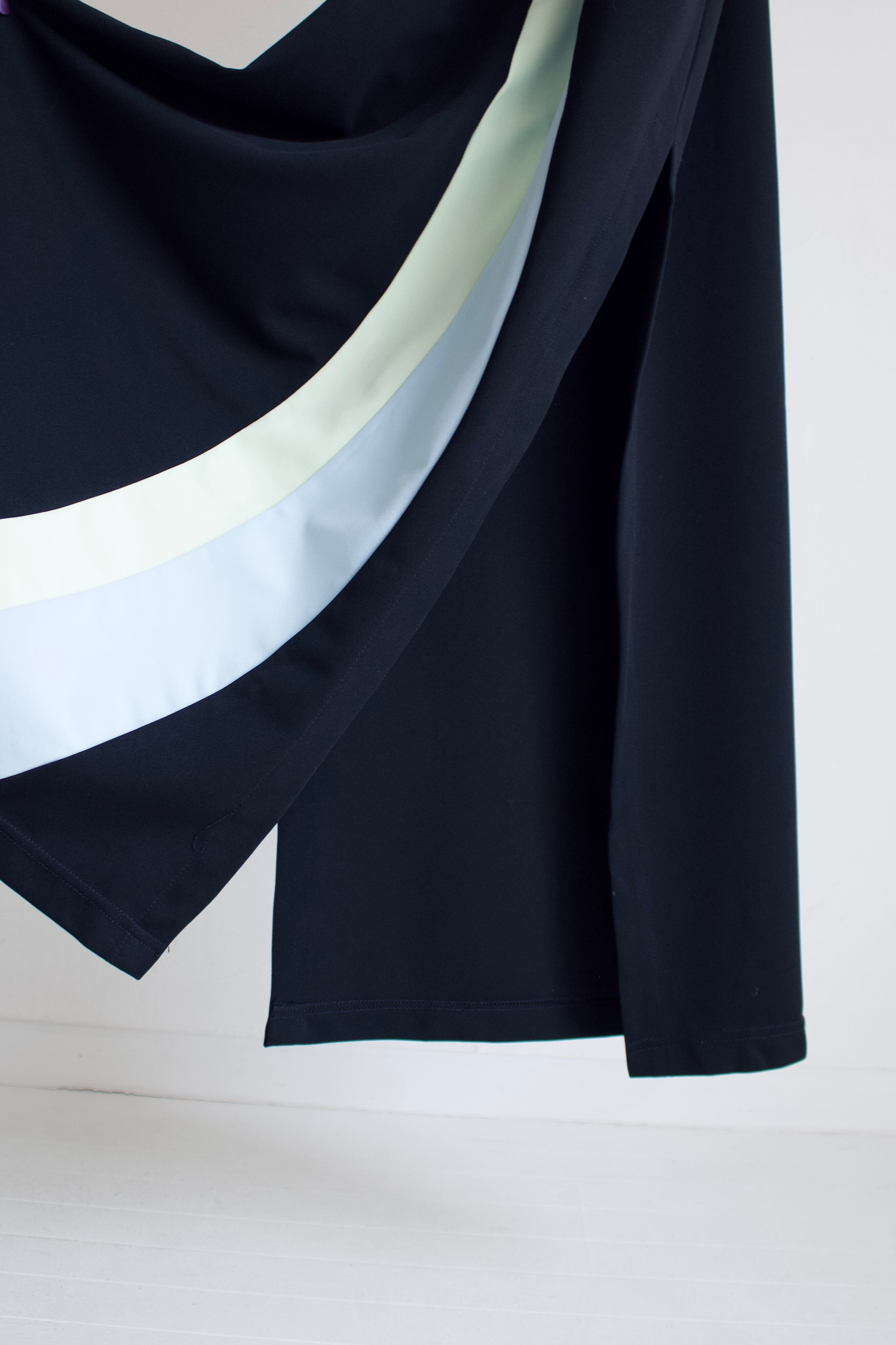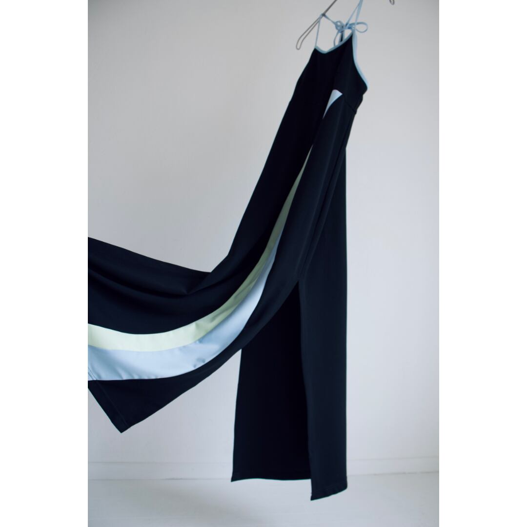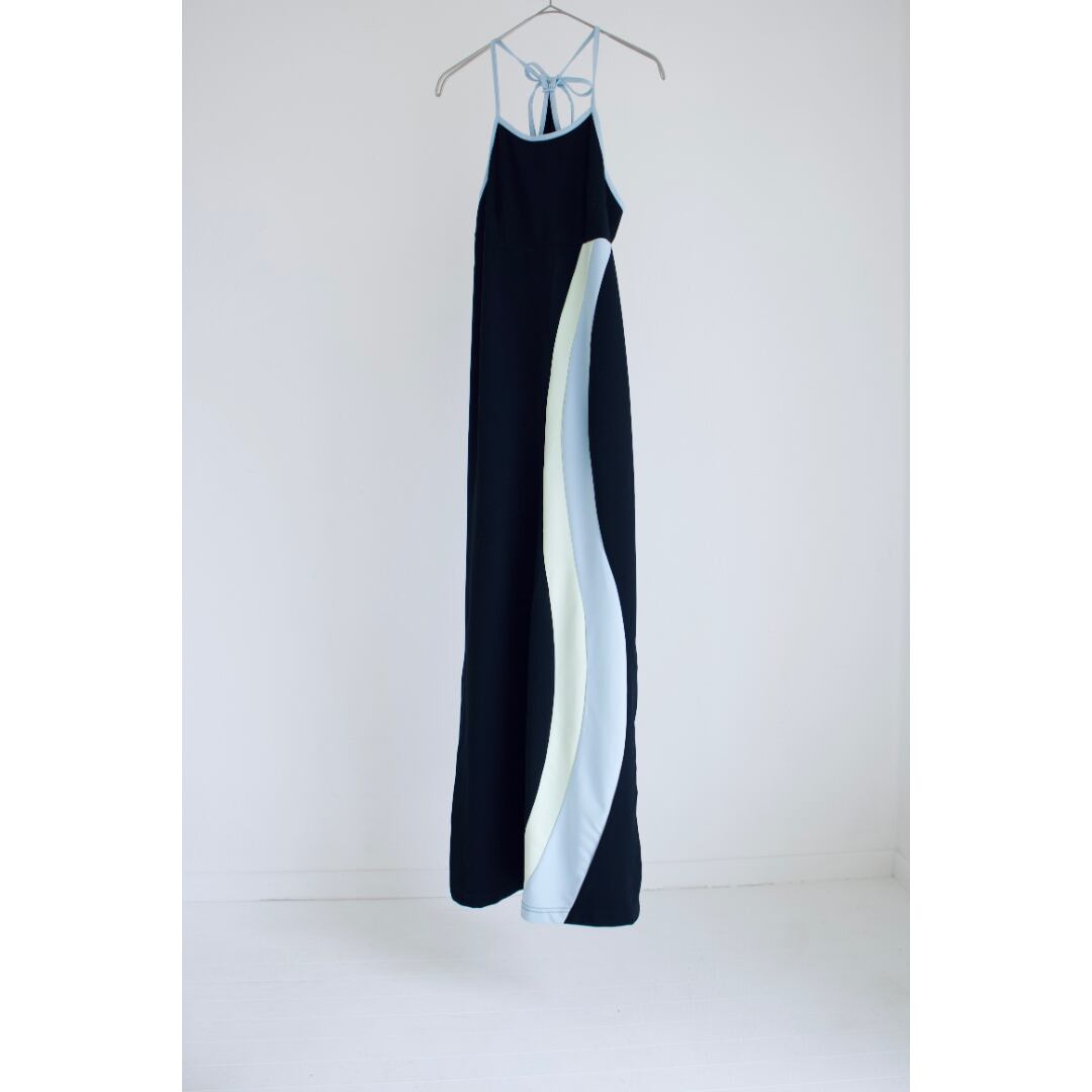 ブラックベースに縦の曲線ラインが目を惹く一着。