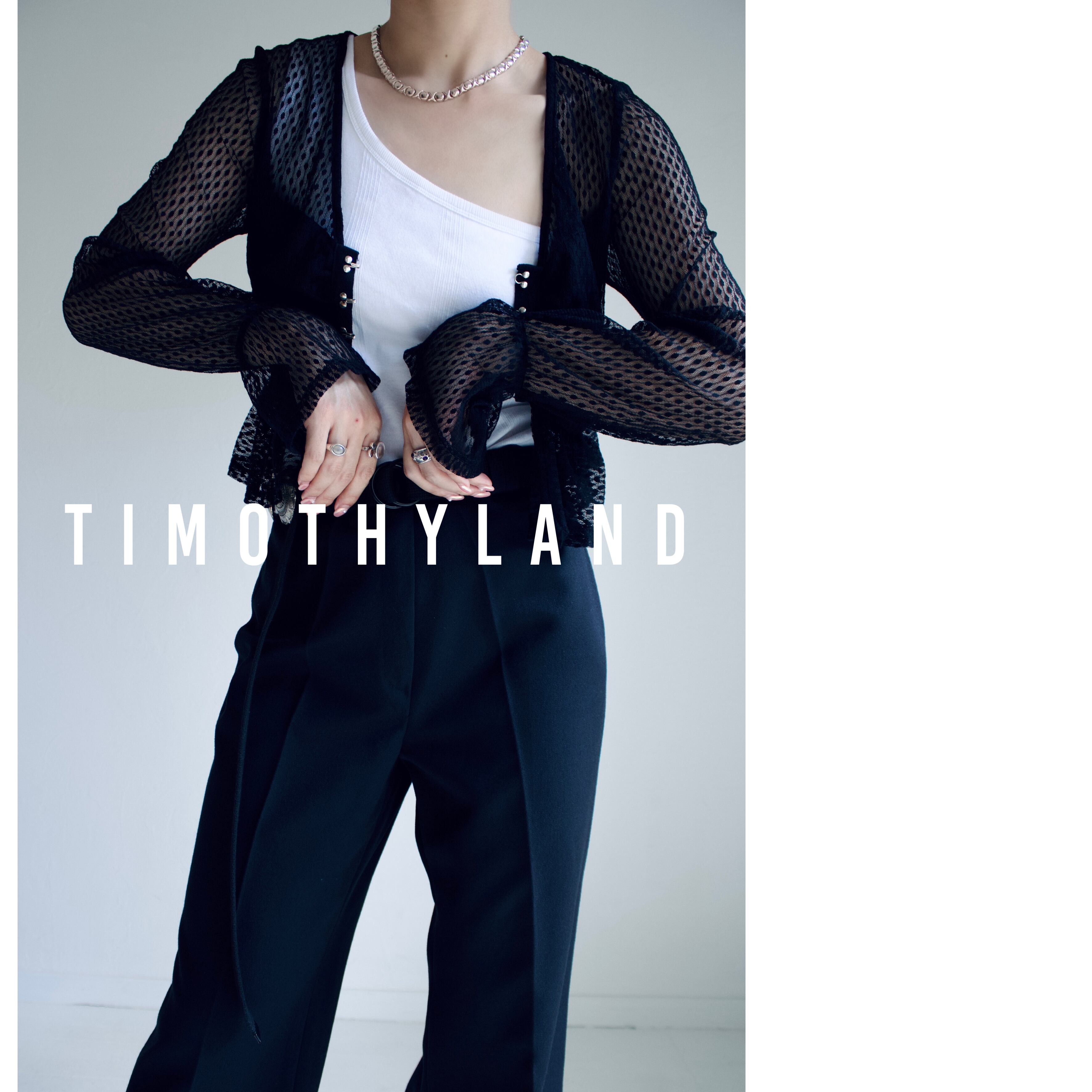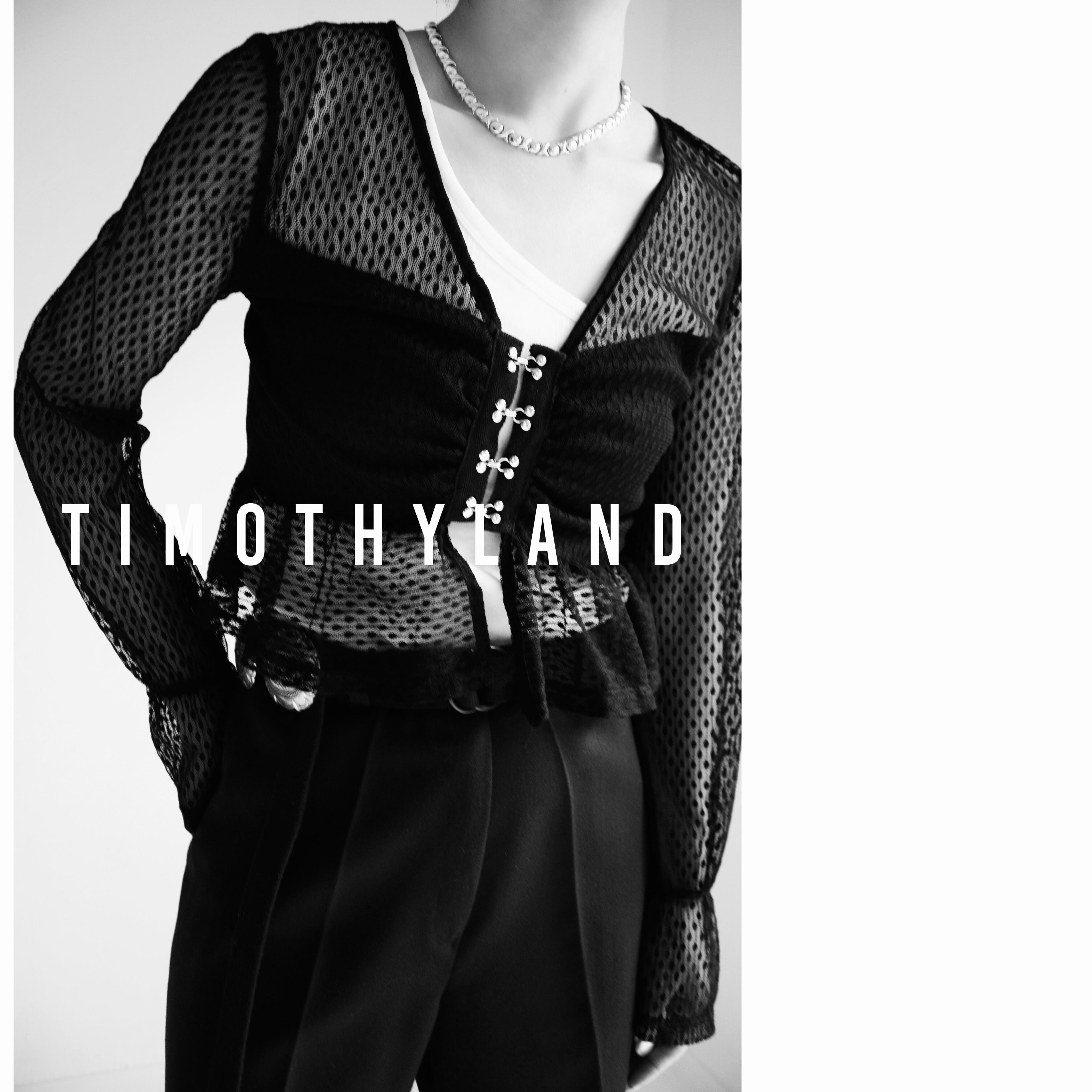 メッシュ長袖クロップド丈 長袖ホック付きカーディガン