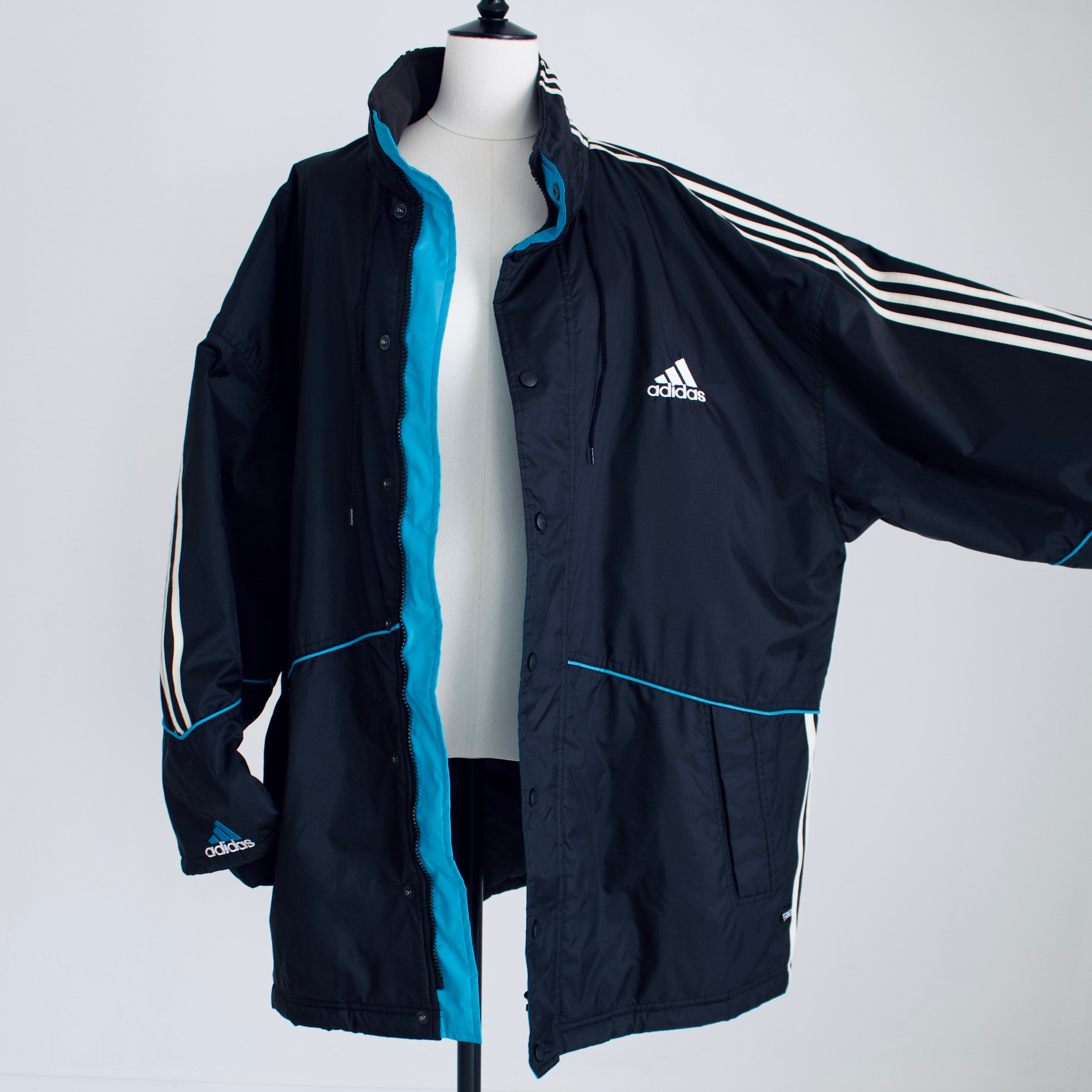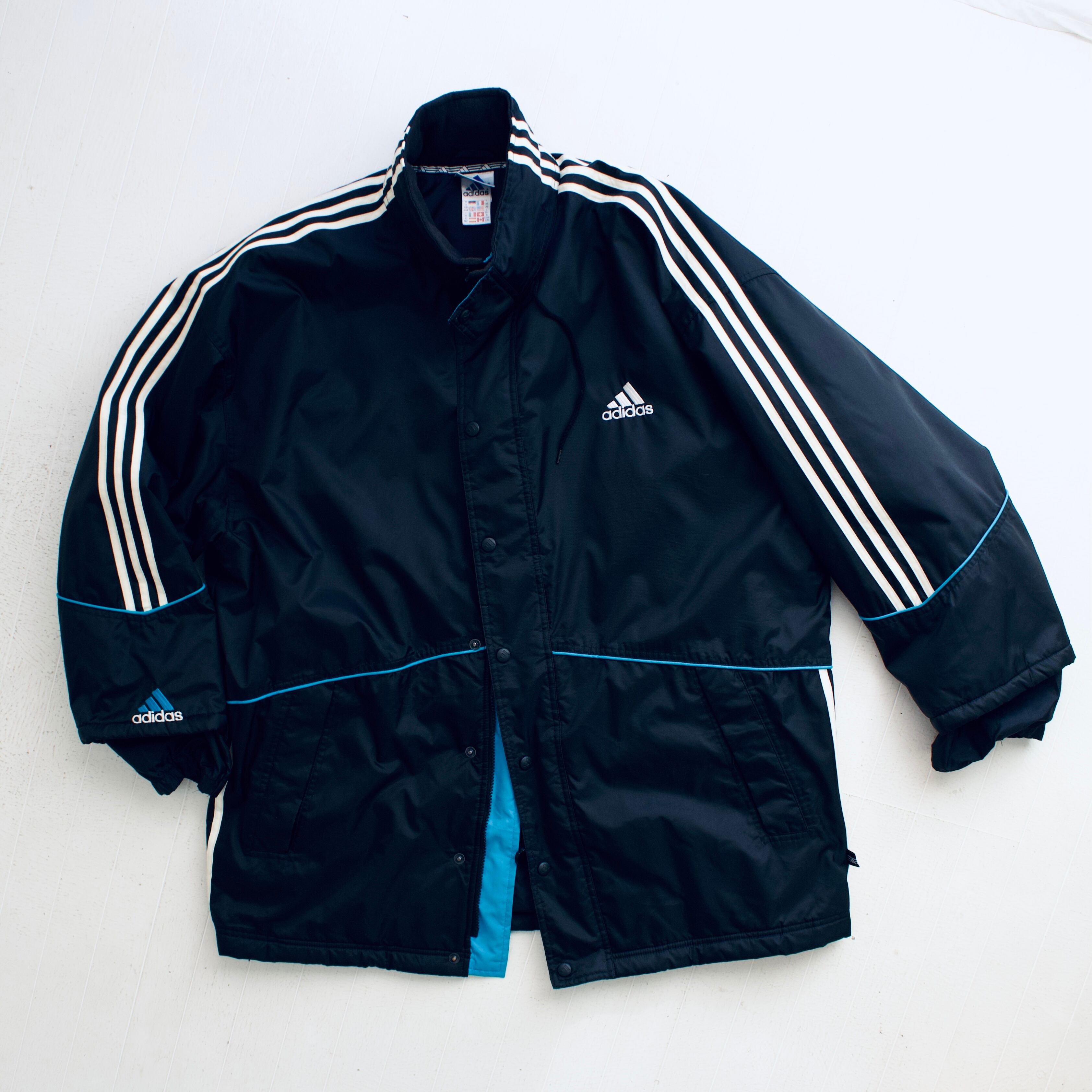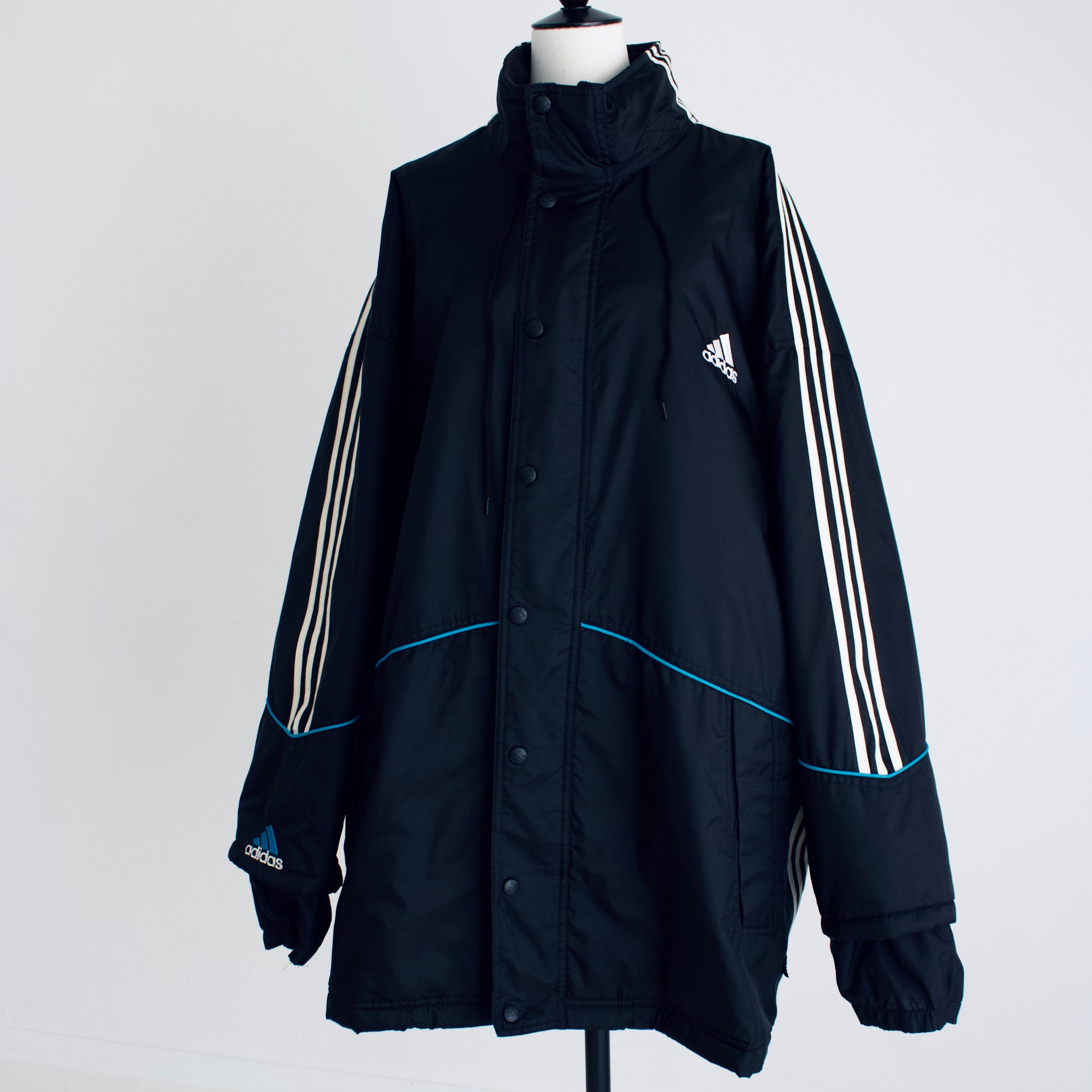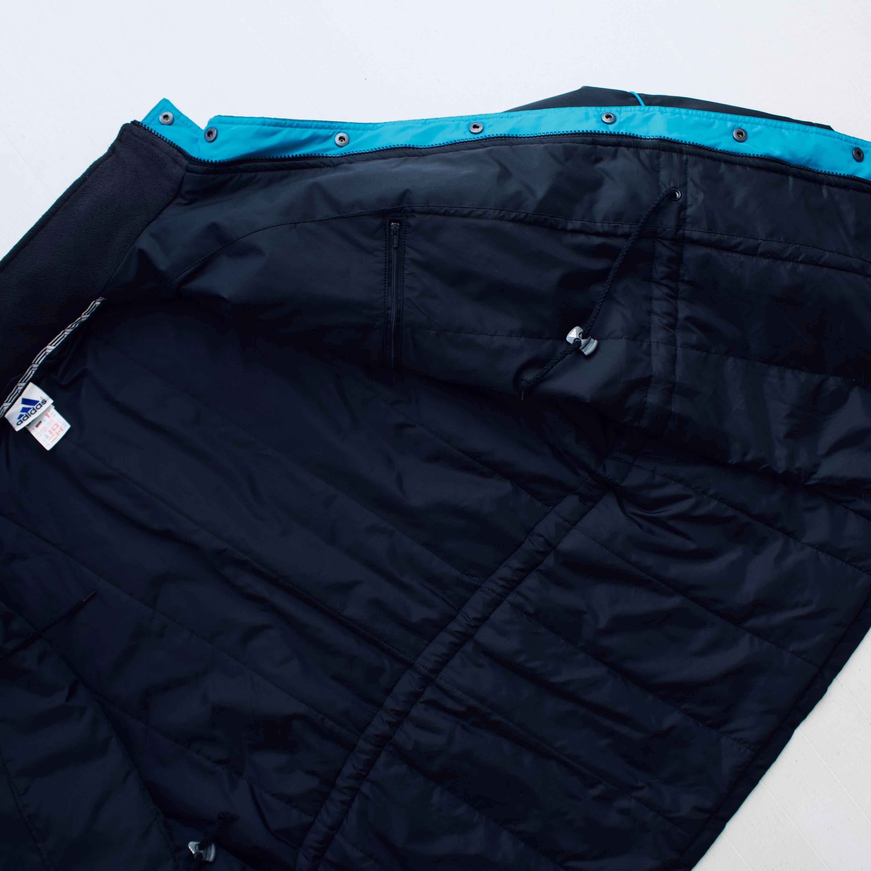 90年代 アディダス ブラック&ターコイズブルー 中綿入りナイロンジャケット