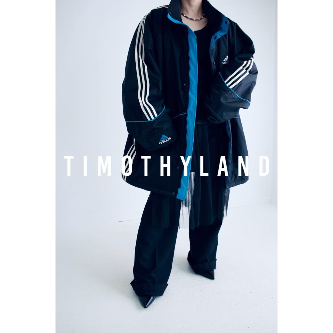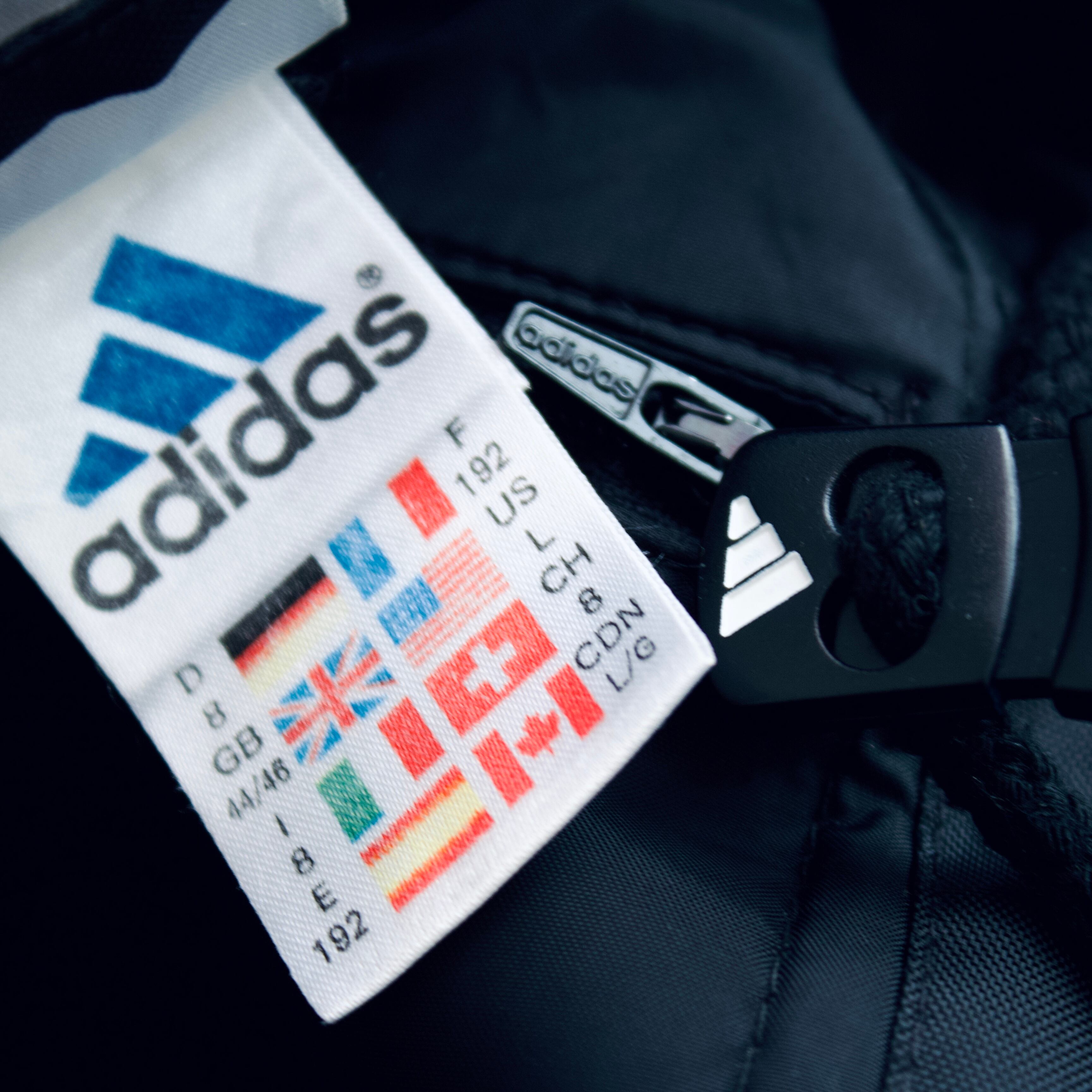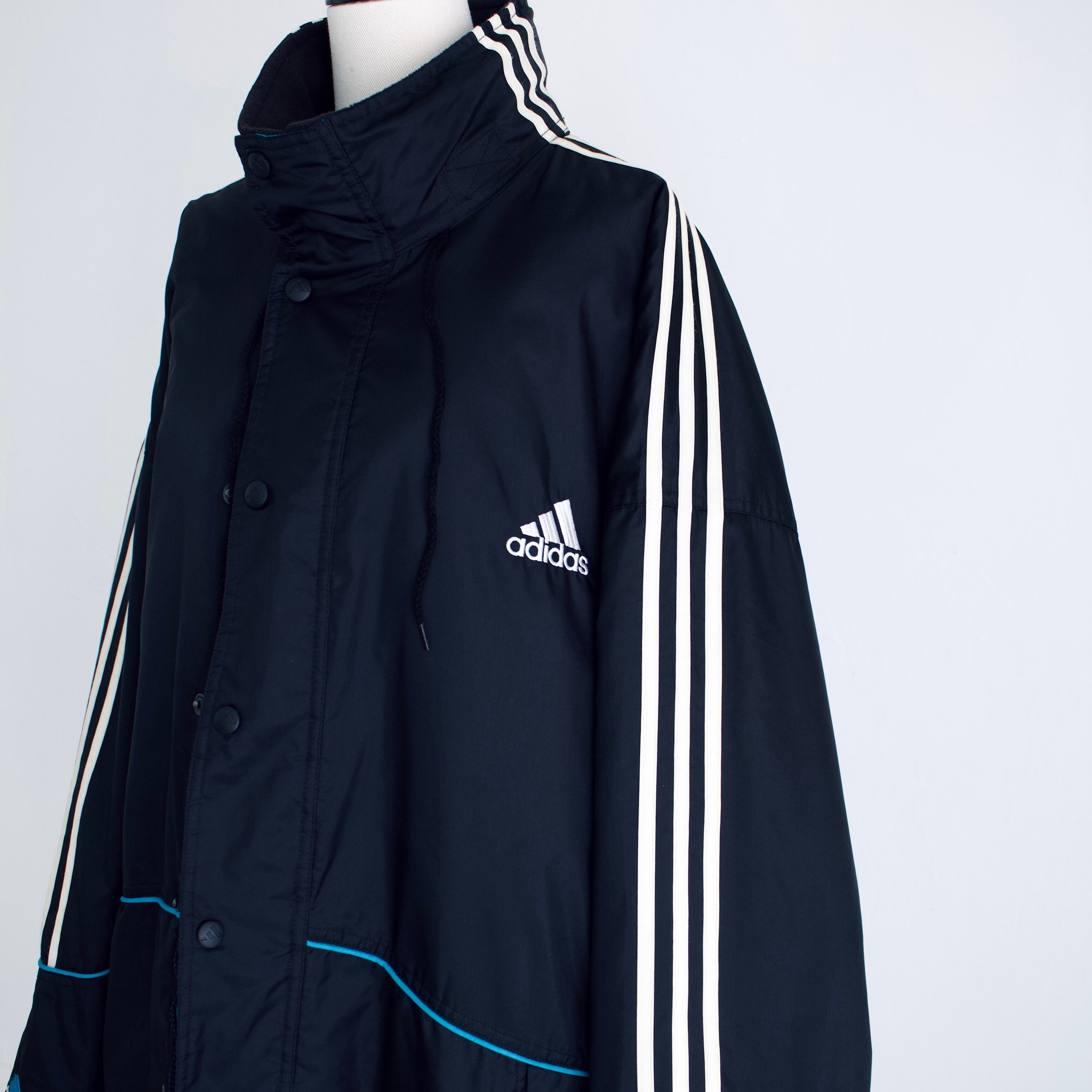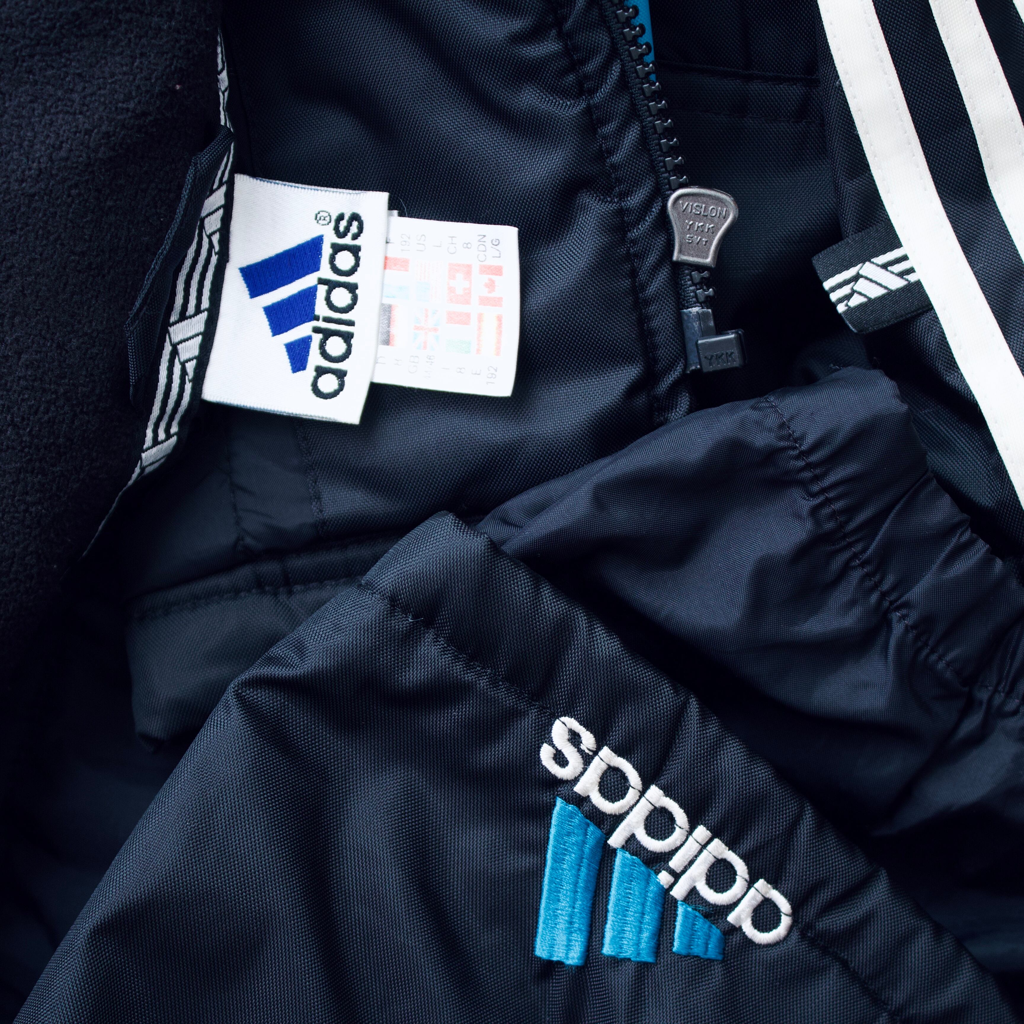 90年代 アディダス ブラック&ターコイズブルー 中綿入りナイロンジャケット