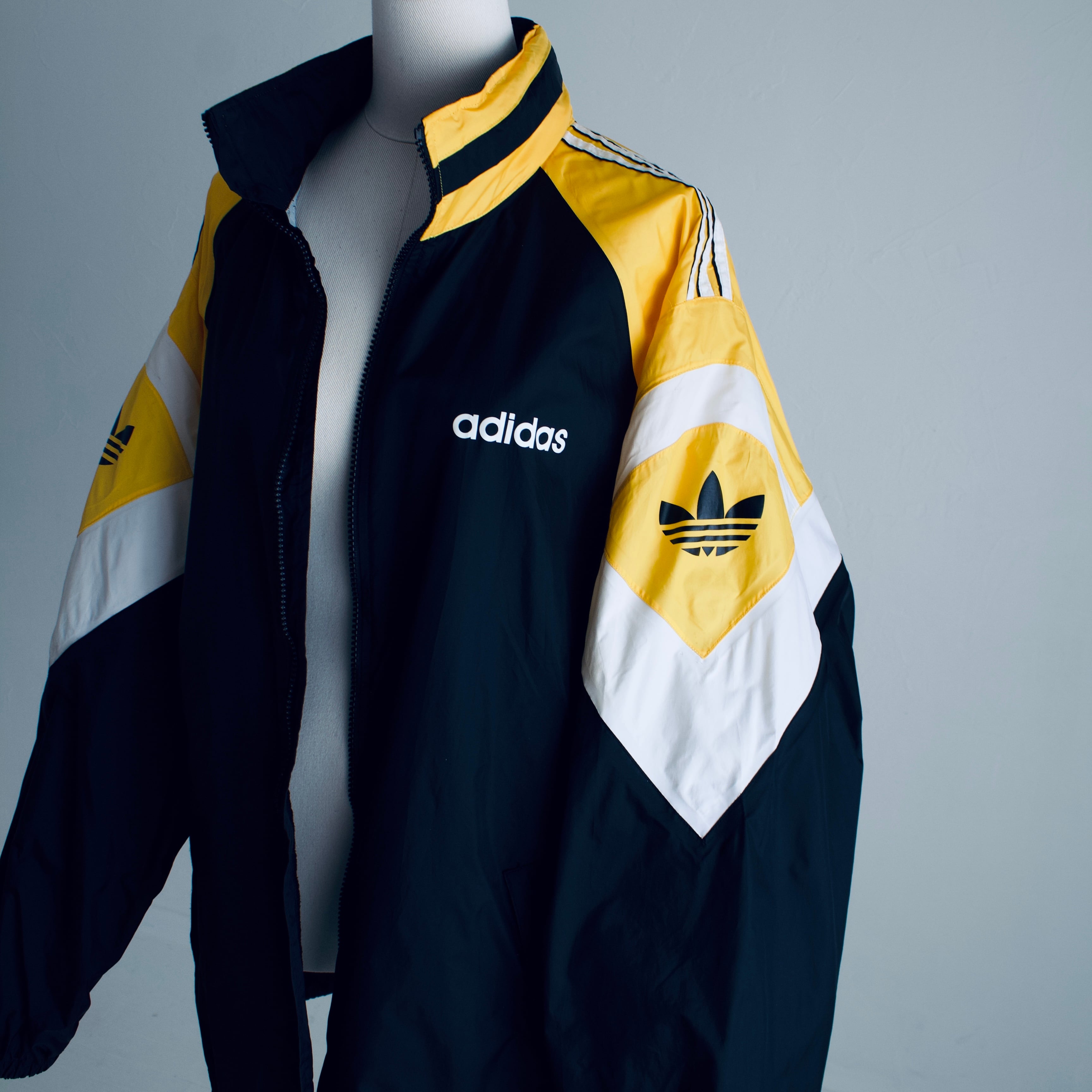 90年代 アディダス ブラック×イエロー×ホワイト ナイロンジャケット