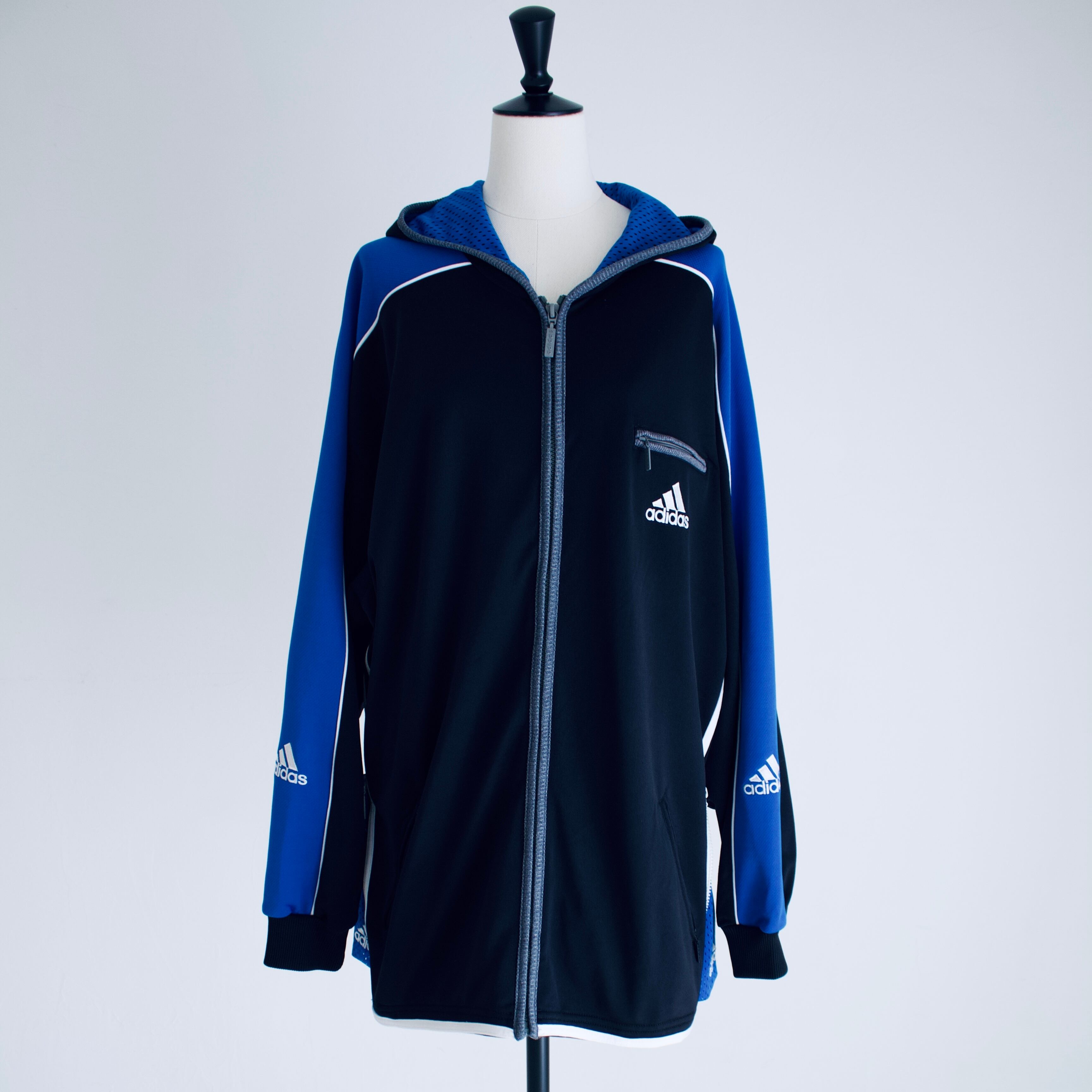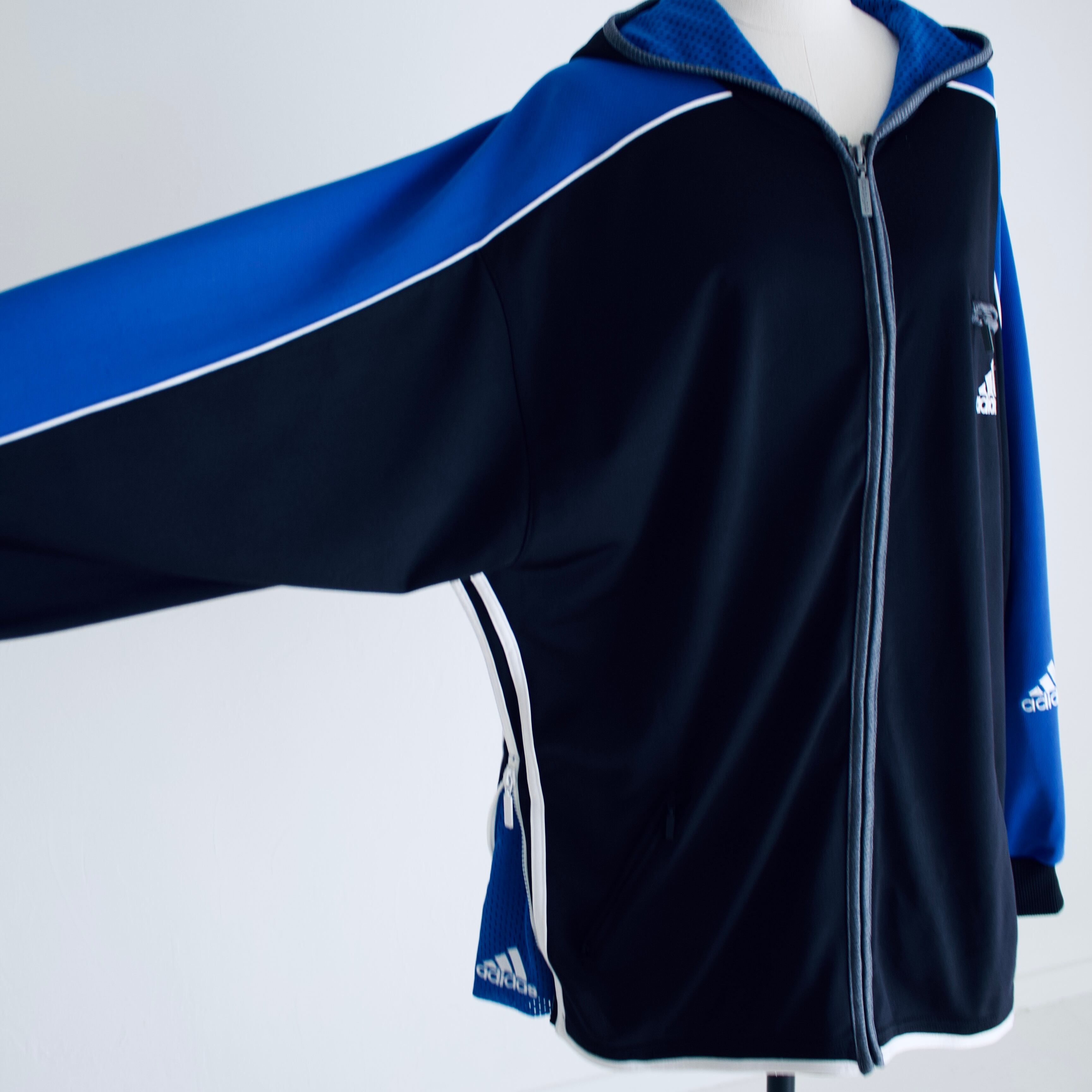 90's adidas Black×Blue×White Hoodie Jacket